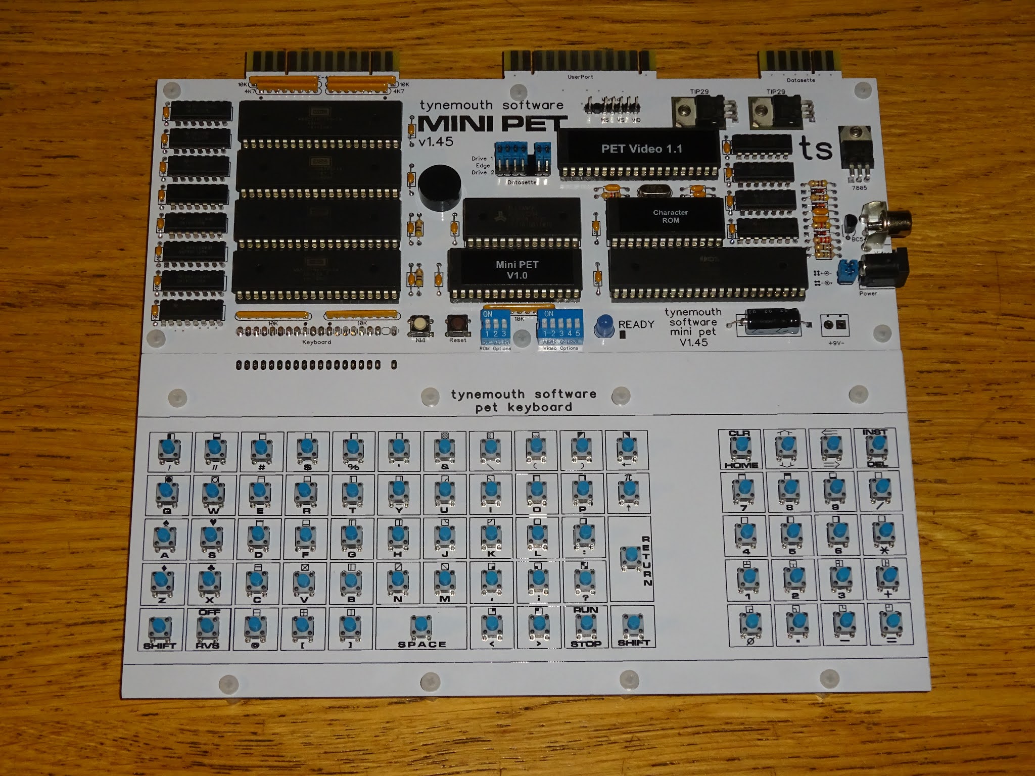 2022 Update: The Mini PET has been replaced by the Mini PET 40/80. This has a built in much nicer keyboard and supports 40 and 80 column mode. Also available is the Mini PET 40/80D, a preassembled drop in replacement board with a built in SD2PET. Both are available now from The Future Was 8 bit.
