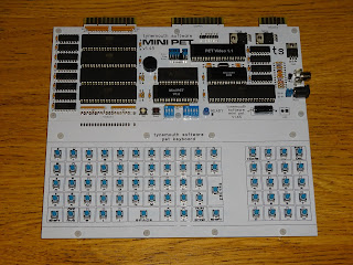The Mini PET boards had been designed to be the same size as the keyboard PCB, which had already been designed as a direct replacement for the chiclet keyboard on the 2001 PET, so the Mini PET was designed to be the same width as that.