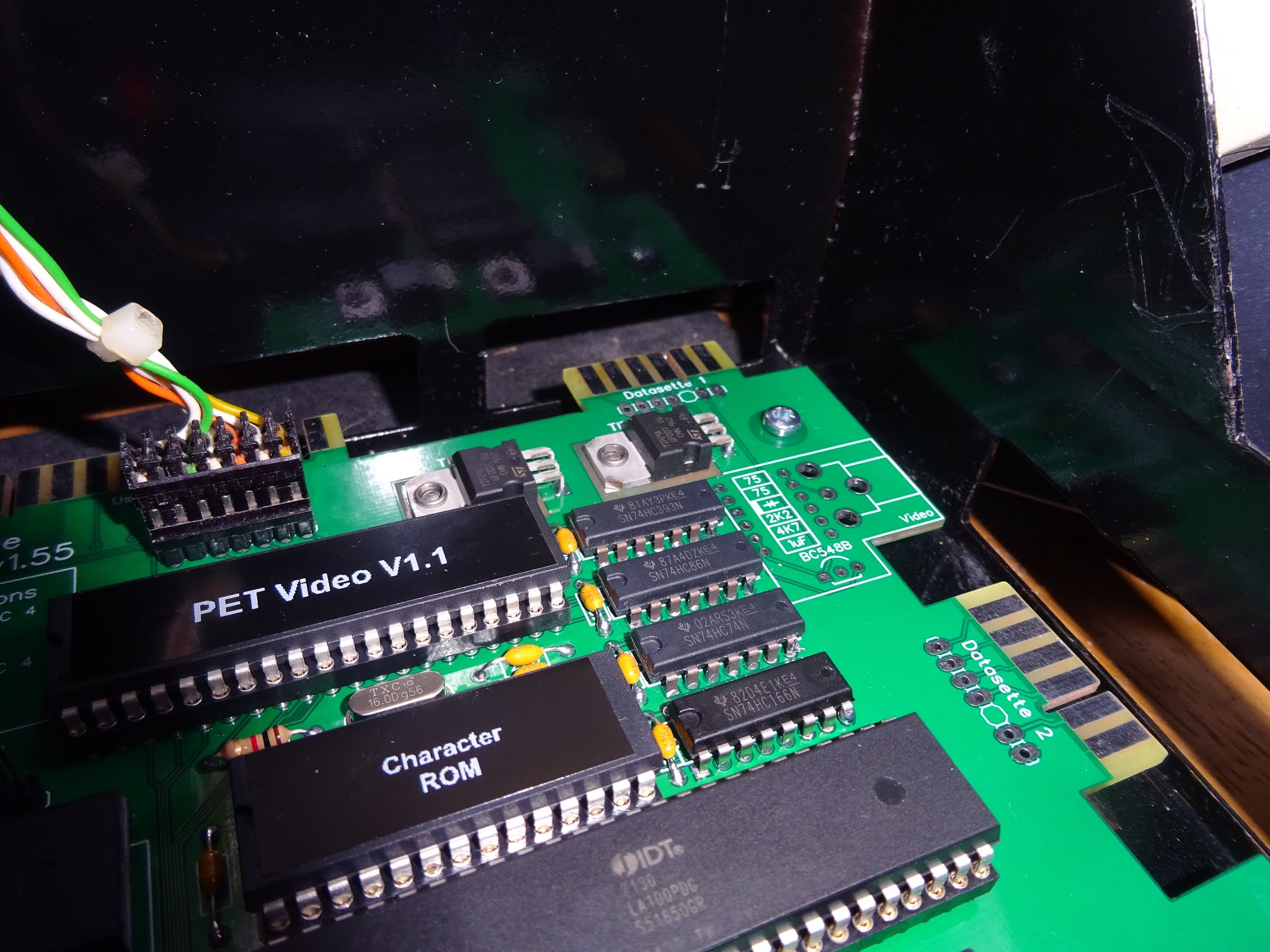 There is now a side datasette port, for datasette 2, positioned as on later PETs, so the board gives access to both rear and side datasette ports.