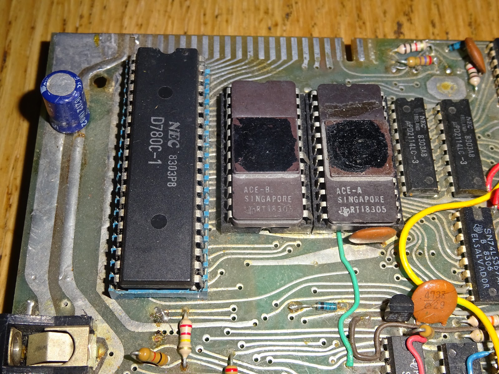 I couldn't get anything running with the Z80 in the socket on the Ace, only the 4th. Those sockets should be wired in parallel at this point. It was clear some of the socket pins where dodgy. The original Z80 was also apparently desoldered so the pins were already a bit ropey.