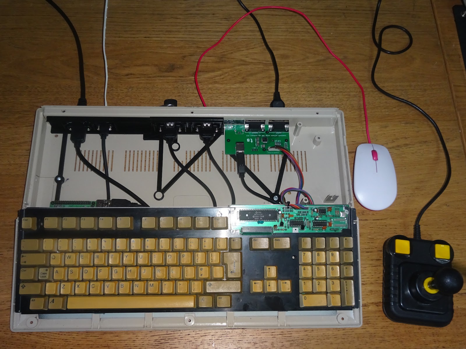 This is the "Amiga 500 Keyboard with dual joystick - internal USB connection" version.