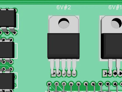 When it came to the Mini PET 40/80D, I was able to go for one of the surface mount 6V regulators with enable pins, so no need for the resistors, these were pre-set for 6V. The 5V regulator next to them is a plain fixed voltage always on type, as there was no need for soft power on with the 40/80D.
