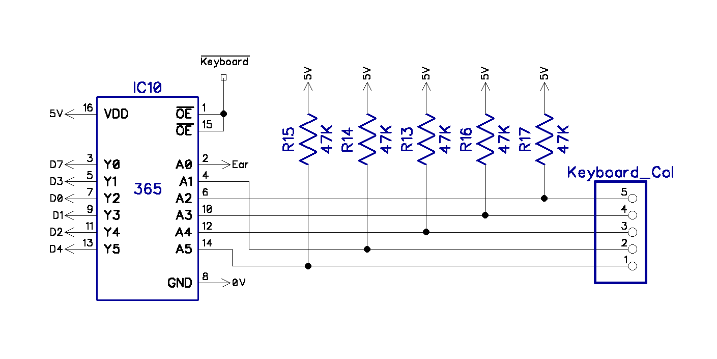 The existing port is controlled by a signal /Keyboard, which goes low when that port is being read. On the NTSC model, they fit D11, which is wired between the control signal and D6. When the signal goes low, it pulls the D6 data line low.