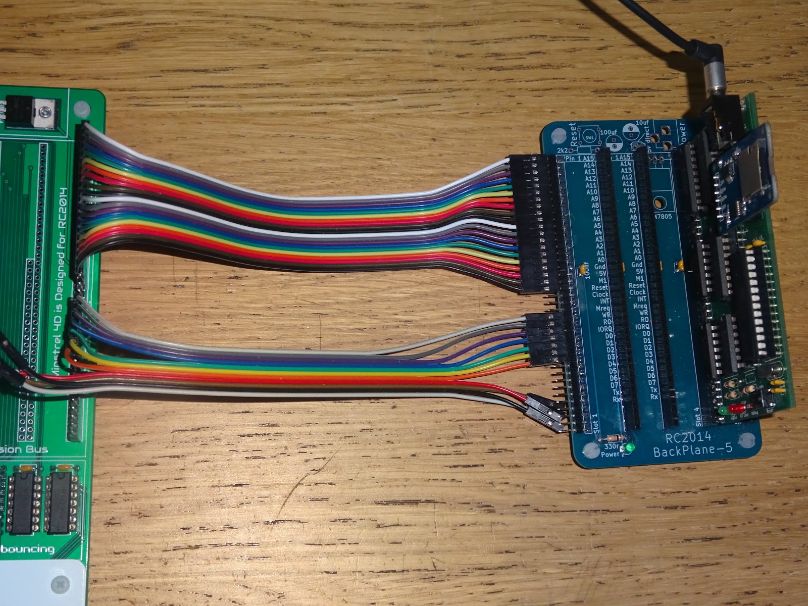 I set it on on a backplane with ribbon cable connection and plugged it into a Minstrel 4th, and re-tested it to see it was still working on the normal 4th, and it was fine. The red LED flashed and then the green one came on.