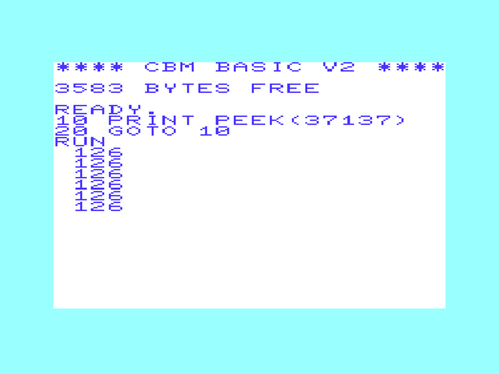 I guess this smoothed supply was an attempt to reduce noise, and I have to say this was one of the nicest pictures I have seen from an NTSC VIC, with a clean straight line between the border and background, rather than the usual ripply line.
